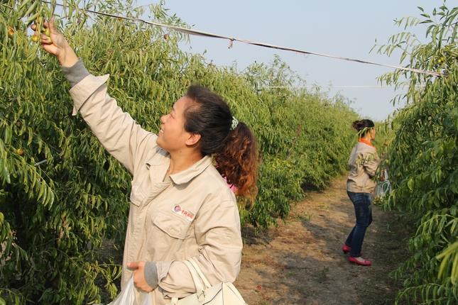在冬棗園管理人員的簡(jiǎn)單介紹后,大家兩人一組,拿著熟料袋,穿梭在冬棗樹之間,美美地挑著自己滿意的冬棗。經(jīng)過一番“戰(zhàn)斗“,大家摘得“盆滿缽滿”,每一個(gè)冬棗看上去潤(rùn)色都非常的好。