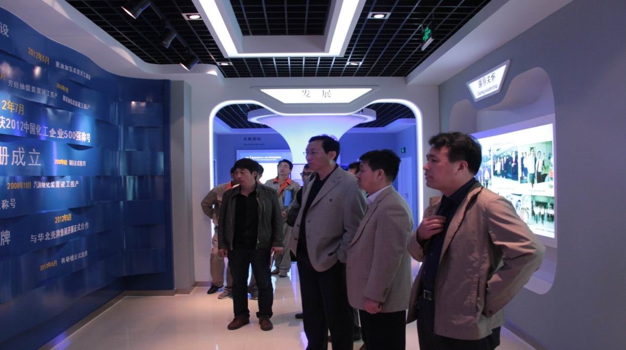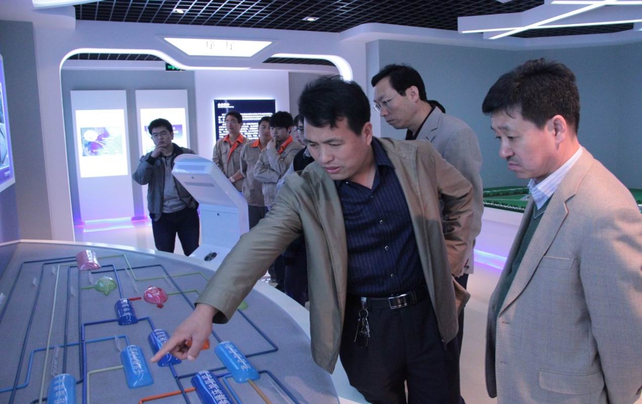 會(huì)議前,雙方一同來到新啟元展廳,就公司基本情況、現(xiàn)有裝置、人文等方面進(jìn)行介紹,期間,雙方領(lǐng)導(dǎo)還就公司裝置工藝循環(huán)流程展開討論。