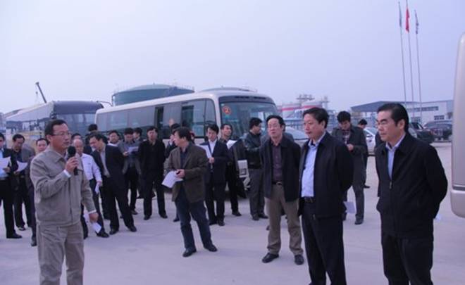 2013年10月31日,渤海新區(qū)黨工委書記丁繡峰一行蒞臨新啟元督導(dǎo)觀摩蒽油加氫項(xiàng)目建設(shè),集團(tuán)總經(jīng)理于國(guó)臣等領(lǐng)導(dǎo)在綜合樓前進(jìn)行接待。