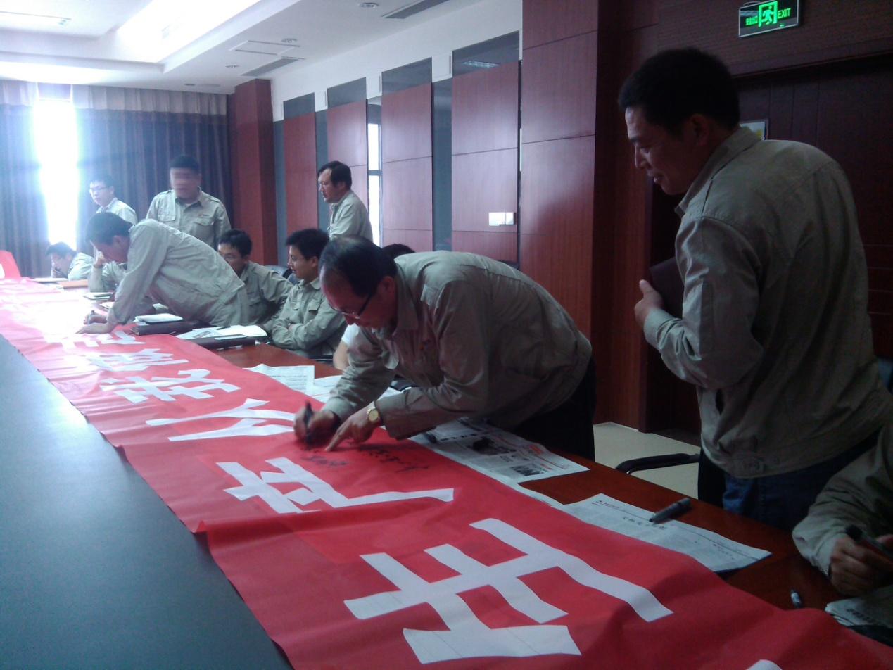 在安全生產(chǎn)月啟動(dòng)儀式結(jié)束后,與會(huì)人員把“我為安全說(shuō)句話”的內(nèi)容和姓名簽在條幅上,表達(dá)出每個(gè)人對(duì)待安全生產(chǎn)的認(rèn)識(shí)。