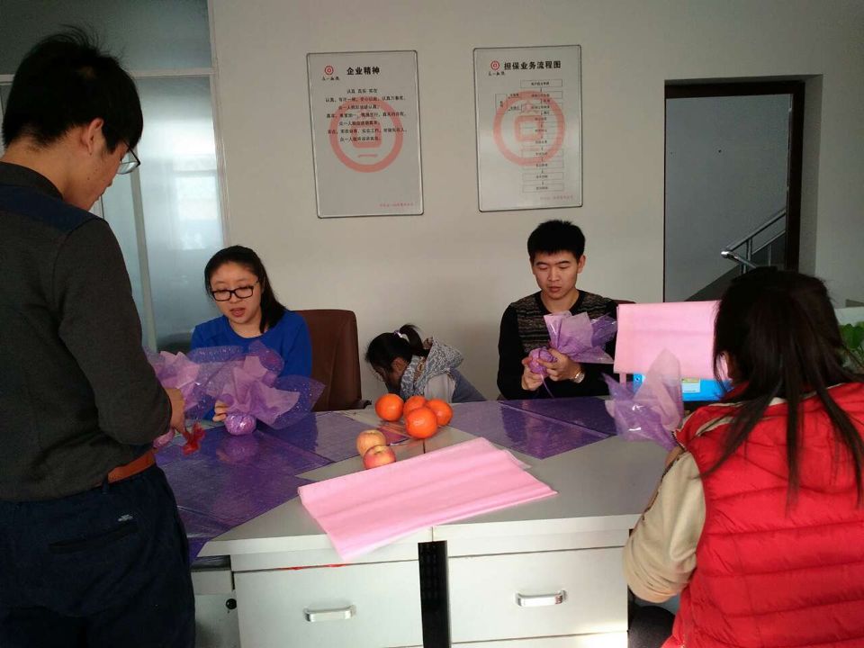 員工們把親手包好的平安果連同節(jié)日的祝福送到每一個銀行工作人員手中,雖然禮輕但情意濃重,工作人員紛紛表示感謝,并感受到擔(dān)保公司貼心的服務(wù)和溫情的祝福,場面一片溫馨熱鬧。