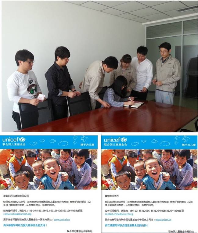 捷油公司全體員工和家屬從工資、平時的罰款中籌集資金3000元,匯給聯(lián)合國兒童基金會,奉獻自己的一份愛心。