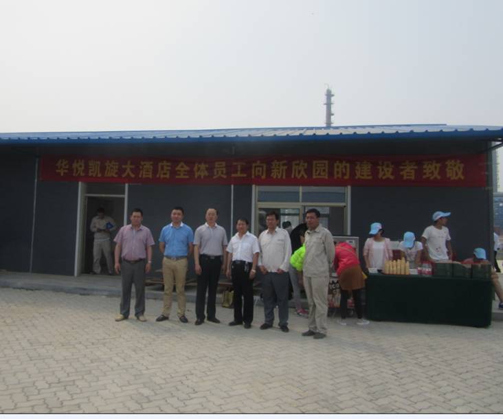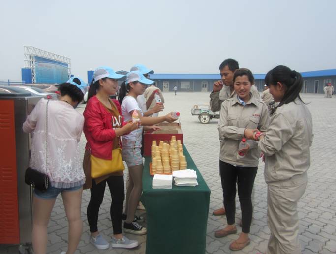 根據(jù)董事長提出的“集聚激情、 亮出真情、 體現(xiàn)親情”的口號, 6月17日一早,華悅凱旋大酒店經(jīng)過細致安排,選派精干員工,在酒店副總經(jīng)理孫軍和施艷帶領(lǐng)下,到新欣園施工現(xiàn)場進行慰問,將一瓶瓶滿懷敬意的礦泉水送到建設(shè)者們的手中,并現(xiàn)場制作冰激凌,給建設(shè)者帶去一絲絲“溫暖 ”的涼意,全體員工共祝新欣園生日快樂。