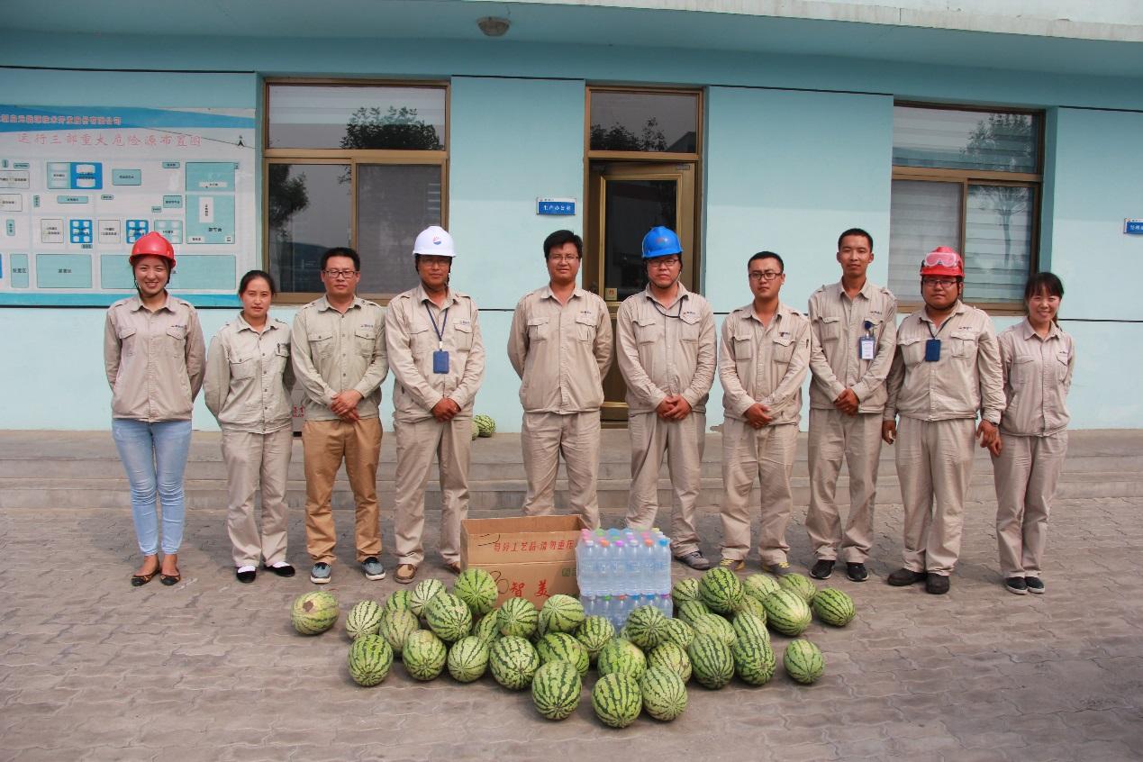 公司工會深入基層進行慰問,為一線員工及施工隊伍送去西瓜、礦泉水等消暑食品,使堅守在檢修現(xiàn)場的員工清涼度過炎炎夏日。
