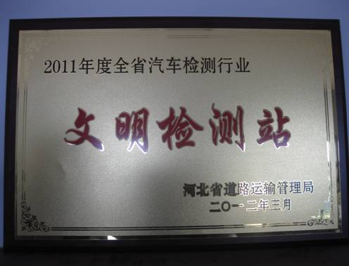 近日,臨港華誠必達汽車綜合性能檢測有限公司被河北省道路運輸管理局授予2011年全省汽車檢測行業(yè)“文明檢測站”榮譽稱號。