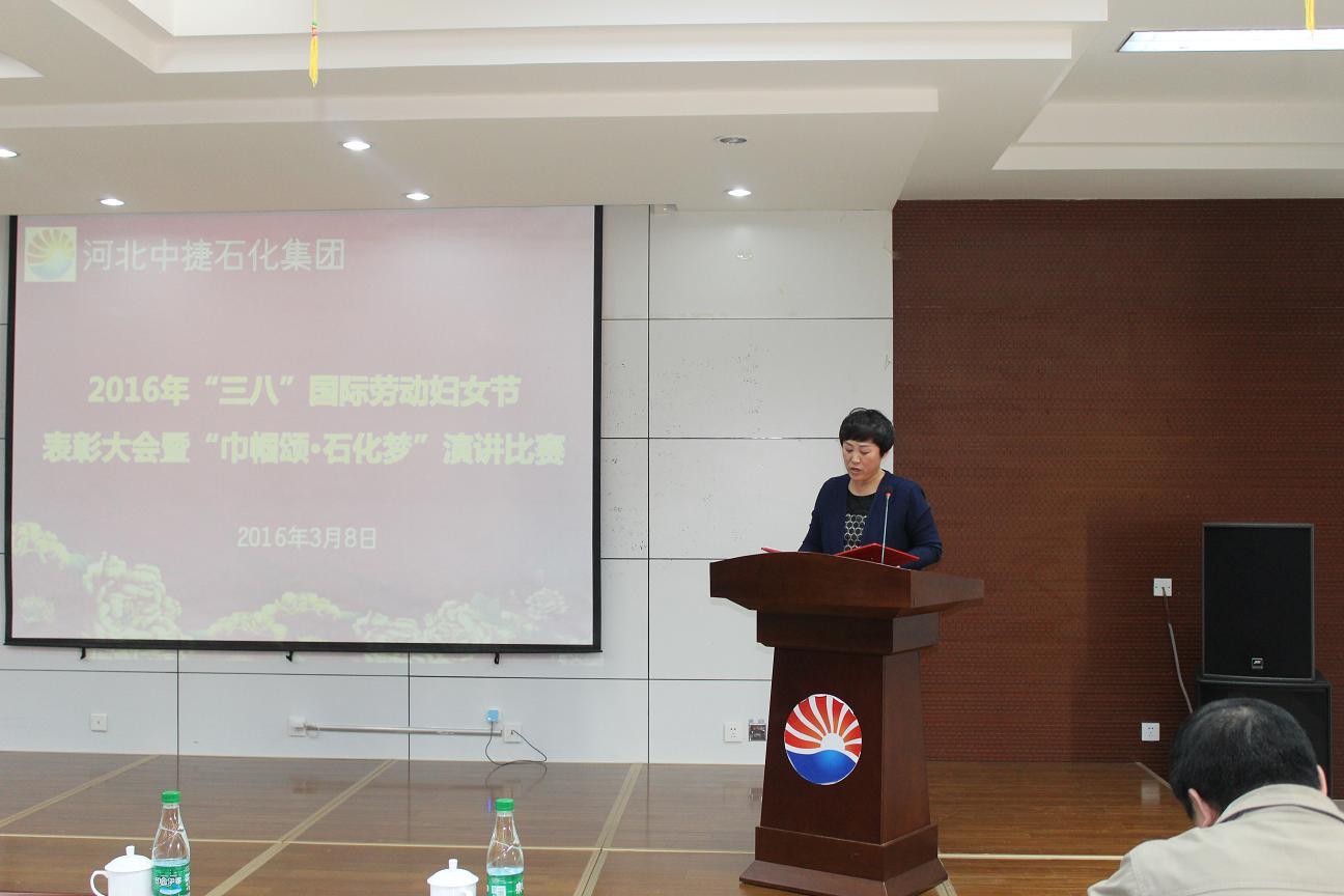 3月8日,是國際勞動婦女節(jié),為了讓公司的女工度過一個輕松快樂的“三?八”婦女節(jié),同時表彰先進女工,河北中捷石化集團2016年“三八”婦女節(jié)表彰大會暨“巾幗頌?石化夢”演講比賽于3月8日下午隆重舉行,集團公司及各所屬單位領導、嘉賓評委、員工代表共計70余人參加了此次會議。