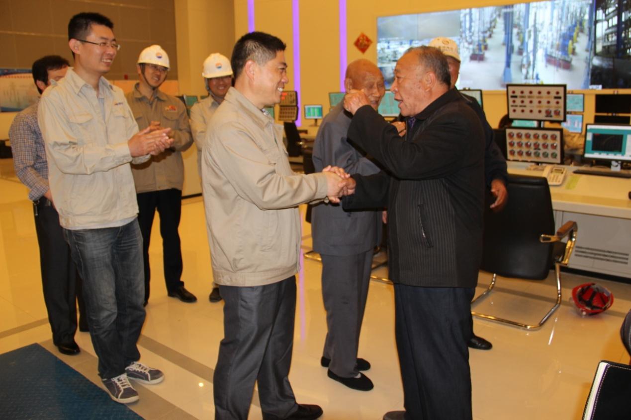 老干部們兩鬢斑白但步履矯健,在喬總的陪同下沿經(jīng)五路參觀了新欣園碳四精細化工一體化項目、熱電項目以及中控室。喬總沿途向老干部門介紹了公司的發(fā)展前景、采用的先進技術以及裝置投產(chǎn)后的效益情況。