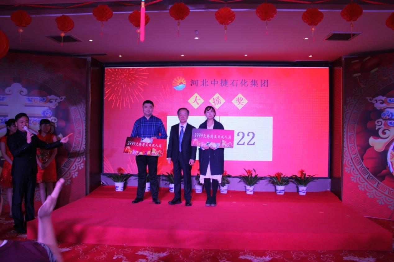頒獎(jiǎng)環(huán)節(jié)過(guò)后,形式各異的歌曲、舞蹈、魔術(shù)等節(jié)目表演和交替進(jìn)行的拍獎(jiǎng)、抽獎(jiǎng)活動(dòng)把整場(chǎng)年會(huì)推向高潮。領(lǐng)導(dǎo)與員工歡聲笑語(yǔ)、真情互動(dòng),呈現(xiàn)了中捷石化大家庭的歡樂(lè)和諧。