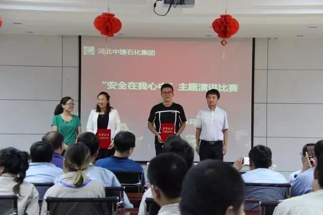 最后,各級領(lǐng)導為參賽選手頒獎并合影留念,同時標志著河北中捷石化集團“安全在我心中”主題演講比賽圓滿落下帷幕。