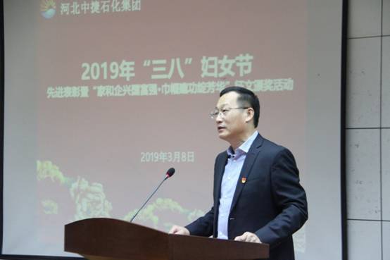3月8日上午,河北中捷石化集團(tuán)在科研樓六樓會(huì)議室組織舉辦了2019年“三八”婦女節(jié)先進(jìn)表彰暨“家和企興國(guó)富強(qiáng)?巾幗建功綻芳華”征文頒獎(jiǎng)活動(dòng)。集團(tuán)公司黨政領(lǐng)導(dǎo),各單位黨(總)支部領(lǐng)導(dǎo)、先進(jìn)女職工、征文獲獎(jiǎng)?wù)呒芭ご淼?0余人參加活動(dòng)。中捷產(chǎn)業(yè)園區(qū)宣傳部劉金林部長(zhǎng)出席了本次活動(dòng)。