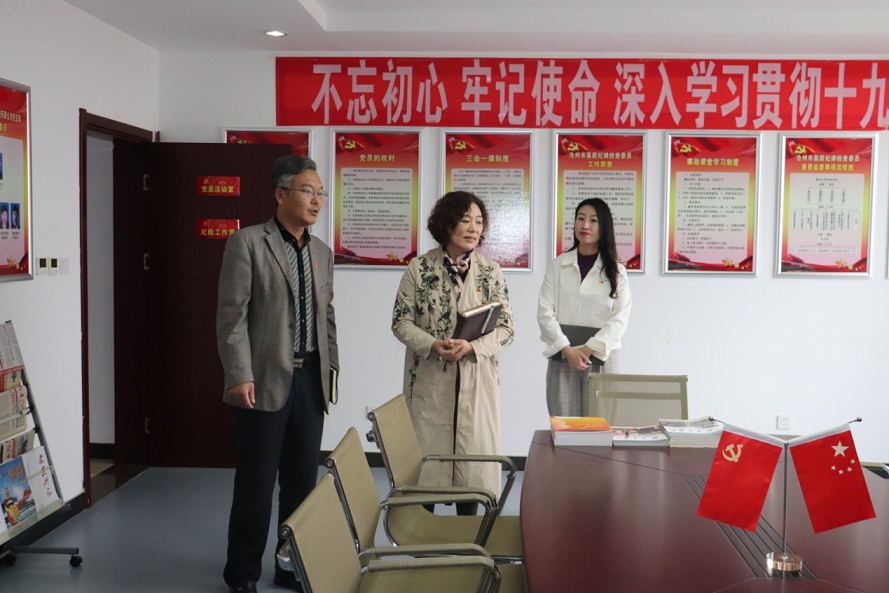 王玉芬書記一行首先視察了黨建活動陣地,查看了集團黨委黨建文化墻、黨員活動室、圖書室等黨建板塊,對集團黨委黨建硬件設(shè)施給予了高度評價,同時對黨建陣地的優(yōu)化升級提出了指導(dǎo)性意見。