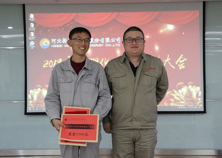 11月4日,新欣園公司2019年合理化建議及創(chuàng)新先鋒個(gè)人表彰大會(huì)在中控室第二會(huì)議室隆重召開,會(huì)議對2019年通過驗(yàn)收的31項(xiàng)優(yōu)秀合理化建議及2名創(chuàng)新先鋒個(gè)人進(jìn)行了獎(jiǎng)勵(lì)表彰。公司總經(jīng)理王政、副總經(jīng)理李冬峰、副總經(jīng)理劉廣杰、黨支部書記馮國衛(wèi)及干部職工代表共60人參加了會(huì)議。