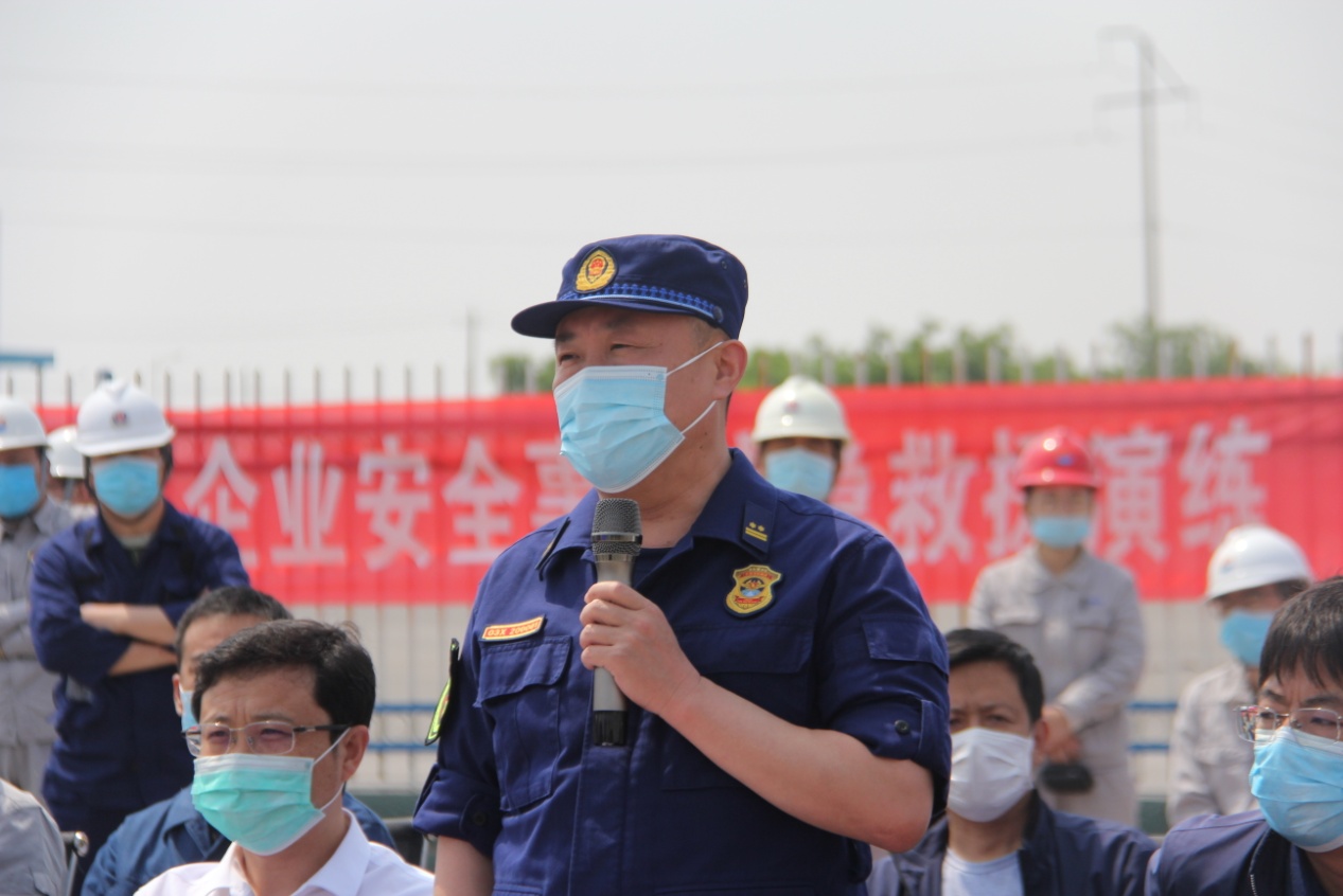 王偉支隊(duì)長(zhǎng)對(duì)此次演練進(jìn)行點(diǎn)評(píng)。他指出:此次應(yīng)急演練非常具有針對(duì)性,各參演單位精心組織、周密安排、密切配合,達(dá)到了預(yù)期效果。此次演練是深入貫徹落實(shí)習(xí)近平總書記對(duì)安全生產(chǎn)工作的重要指示精神,促進(jìn)了政府消防隊(duì)伍與企業(yè)消防隊(duì)伍之間協(xié)同作戰(zhàn)能力及水平的大幅提升。今后,我們要把功夫下在平時(shí),提升救援隊(duì)伍的精神面貌,強(qiáng)化應(yīng)急救援專業(yè)訓(xùn)練,針對(duì)突發(fā)事件應(yīng)急救援工作面臨的新形勢(shì)、新情況,崗位練兵和聯(lián)合實(shí)戰(zhàn)要相結(jié)合,做到磨練隊(duì)伍、總結(jié)經(jīng)驗(yàn)、提升能力,一旦發(fā)生事故,確保能夠快速響應(yīng),科學(xué)救援,將人員傷亡和財(cái)產(chǎn)損失降到最小。同時(shí)針對(duì)演練中暴露出的問題要認(rèn)真總結(jié),加以改進(jìn),確保演練效果真正落到實(shí)處。