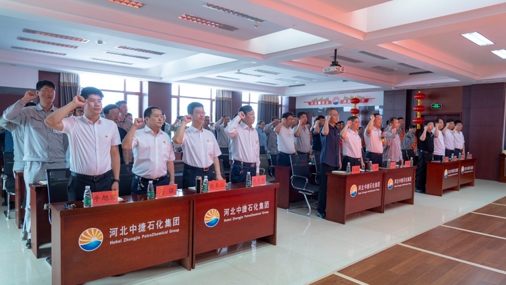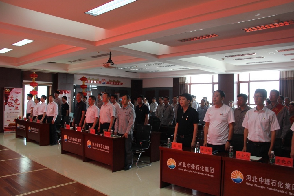 集團(tuán)黨委書記于國(guó)臣同志帶領(lǐng)全體參會(huì)人員共同重溫入黨誓詞,鏗鏘有力的宣誓聲縈繞在會(huì)場(chǎng)的每一個(gè)角落,讓中捷石化的全體黨員更加堅(jiān)定了“不忘初心、牢記使命”的共產(chǎn)黨人本色。