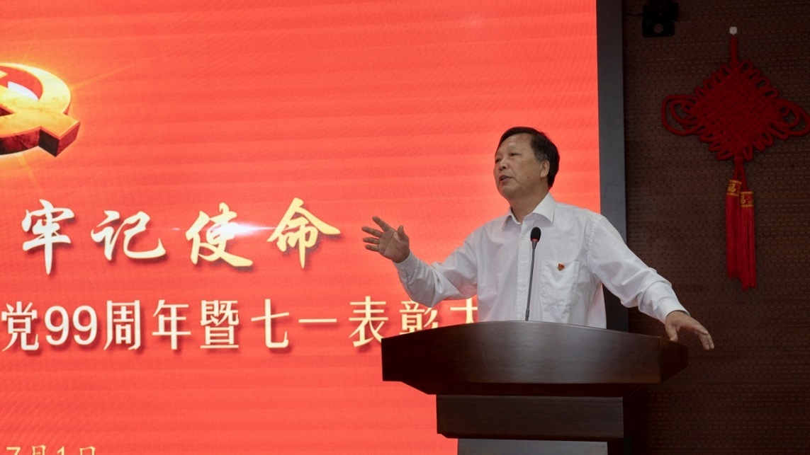 集團(tuán)黨委書記于國(guó)臣同志為大會(huì)作題為《規(guī)規(guī)矩矩做黨建 實(shí)實(shí)在在促發(fā)展》的重要講話。于書記首先指出,集團(tuán)黨委組織召開的此次隆重聚會(huì),是為了共同慶祝中國(guó)共產(chǎn)黨成立99周年,同時(shí)也對(duì)過去一年中涌現(xiàn)出的先進(jìn)基層黨組織、優(yōu)秀黨員和優(yōu)秀黨務(wù)工作者進(jìn)行表彰,這對(duì)于我們牢記黨的光輝歷史,發(fā)揚(yáng)黨的優(yōu)良傳統(tǒng),進(jìn)一步提升集團(tuán)黨委基層黨組織的戰(zhàn)斗力、凝聚力和創(chuàng)造力,對(duì)于我們‘黨建促共建、共建促發(fā)展’目標(biāo)的達(dá)成,以及對(duì)于在中捷石化建廠45周年的特殊節(jié)點(diǎn),繼續(xù)全面推進(jìn)集團(tuán)的持續(xù)、穩(wěn)定、創(chuàng)新、發(fā)展都具有十分重要的意義。我代表集團(tuán)黨委及集團(tuán)公司,向獲得表彰的組織和個(gè)人表示熱烈的祝賀!向集團(tuán)全體黨員致以親切的節(jié)日問候!