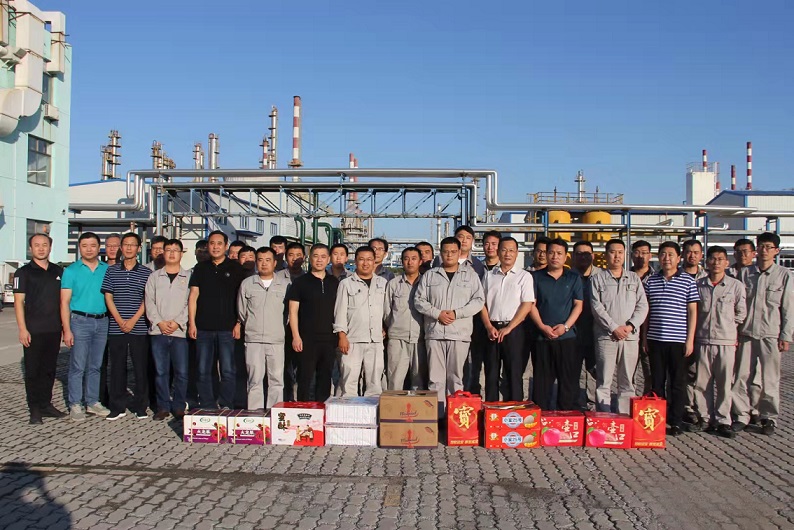 集團(tuán)公司訊 2021年9月21日下午,在中秋佳節(jié)到來之際,集團(tuán)黨委書記于國(guó)臣和總經(jīng)理喬樹華帶領(lǐng)領(lǐng)導(dǎo)班子一行深入新啟元、新欣園、華鑫洺源、華辰石油、華悅凱旋、華騰等下屬單位,為仍然奮戰(zhàn)在一線崗位上的伙伴們送慰問、鼓干勁,送祝福、促生產(chǎn)。在濃濃的節(jié)日氛圍里,集團(tuán)領(lǐng)導(dǎo)班子向全體中捷石化家人的辛勤付出與奉獻(xiàn),致以由衷的敬意和感謝。