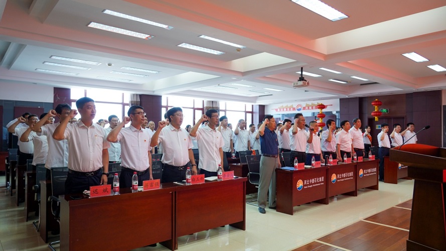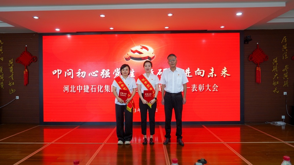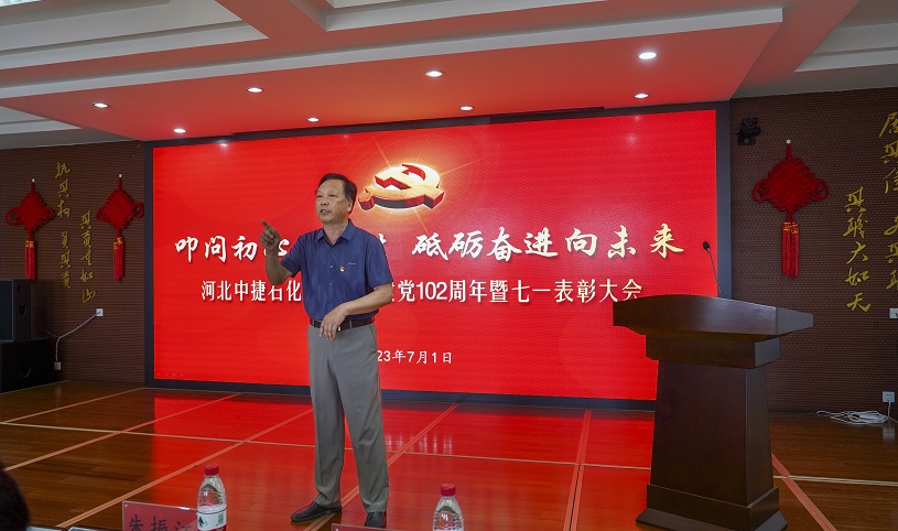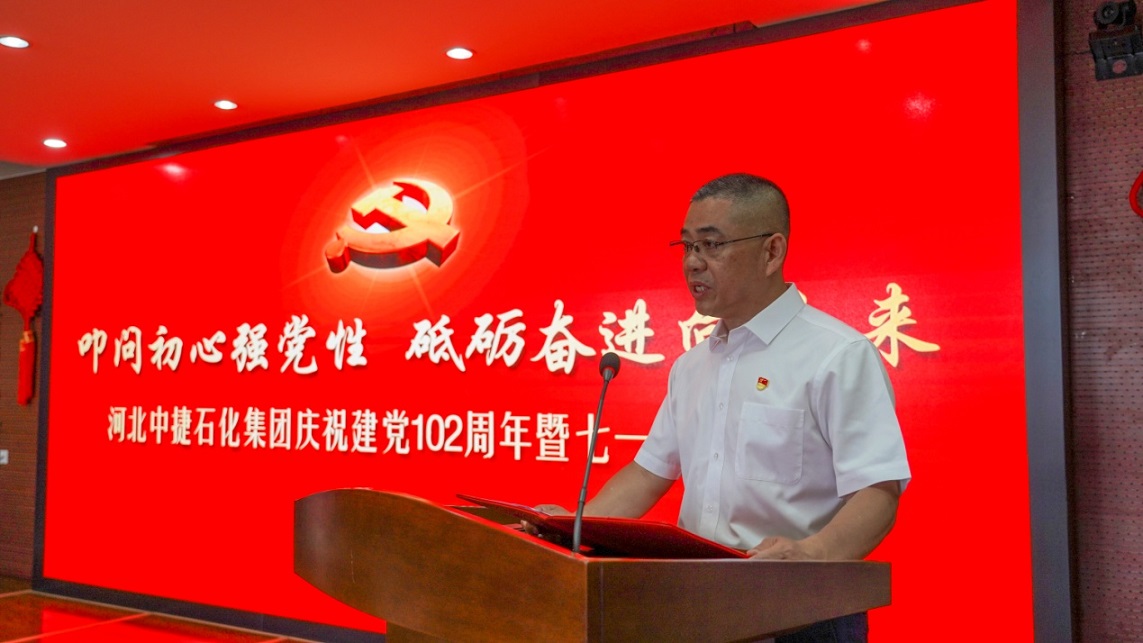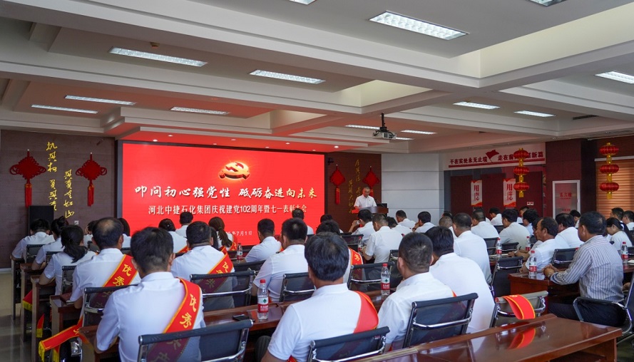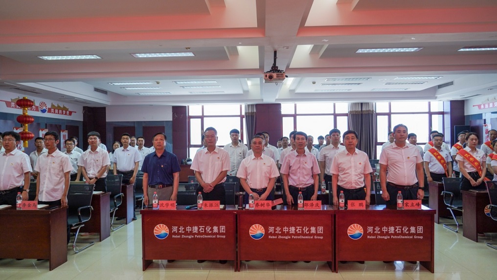 集團(tuán)公司訊 為隆重紀(jì)念中國共產(chǎn)黨成立102周年,深入開展學(xué)習(xí)貫徹習(xí)近平新時代中國特色社會主義思想主題教育,激勵各基層黨組織和黨員充分發(fā)揮戰(zhàn)斗堡壘作用和先鋒模范作用,同時為弘揚(yáng)先進(jìn)典型,彰顯榜樣力量,不斷增強(qiáng)基層黨組織的創(chuàng)造力、凝聚力、戰(zhàn)斗力,7月1日,河北中捷石化集團(tuán)黨委組織召開了慶祝建黨102周年暨“七一”表彰大會。中捷產(chǎn)業(yè)園區(qū)組織人事部副部長、非公有制經(jīng)濟(jì)和社會組織黨委書記邵澤慶同志,原中捷企業(yè)黨工委書記沈?qū)W明同志,集團(tuán)黨委副書記、總經(jīng)理喬樹華同志,集團(tuán)黨委副書記、紀(jì)委書記朱振江同志以及各所屬黨(總)支部書記,各支部黨員代表共計60余人參加了此次活動。