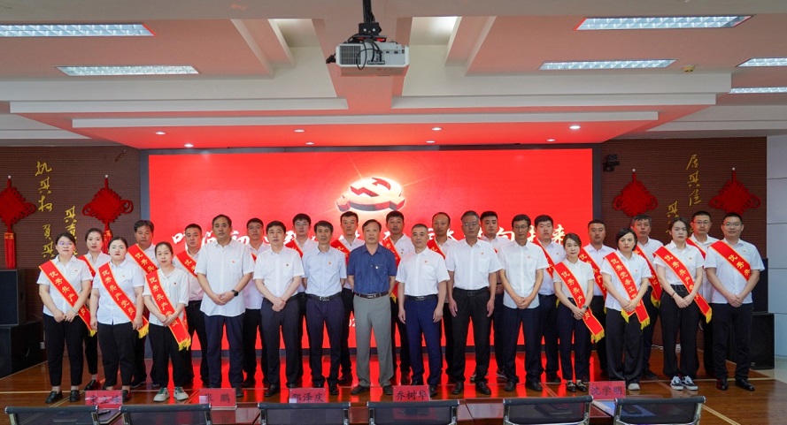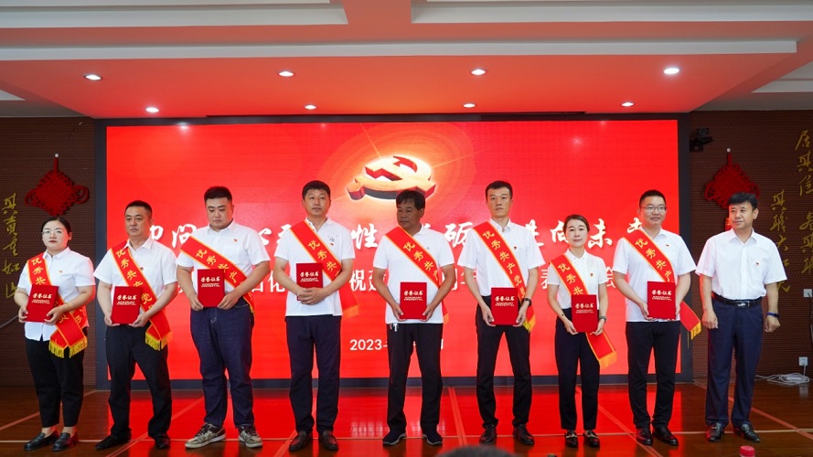 中捷產(chǎn)業(yè)園區(qū)組織人事部副部長、非公有制經(jīng)濟(jì)和社會組織黨委書記邵澤慶同志,集團(tuán)黨委副書記、總經(jīng)理喬樹華同志,集團(tuán)黨委副書記、紀(jì)委書記朱振江同志,集團(tuán)黨委委員、副總經(jīng)理張鵬同志,集團(tuán)黨委委員、新啟元黨總支部書記李志剛同志為2022-2023年度先進(jìn)基層黨組織書記、先進(jìn)基層黨組織、優(yōu)秀黨務(wù)工作者、優(yōu)秀共產(chǎn)黨員進(jìn)行頒獎。