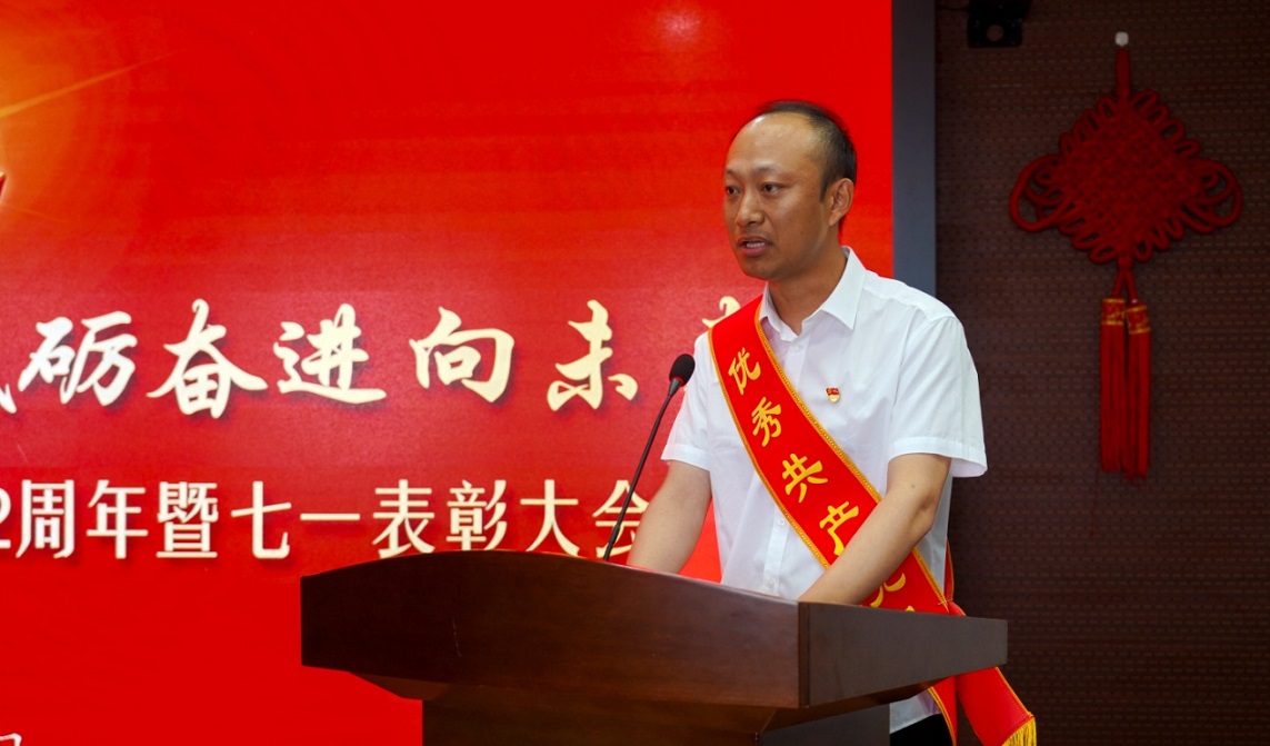 優(yōu)秀共產(chǎn)黨員代表、優(yōu)秀黨務(wù)工作者代表、先進(jìn)基層黨組織代表依次上臺發(fā)言。