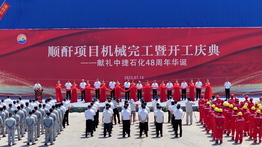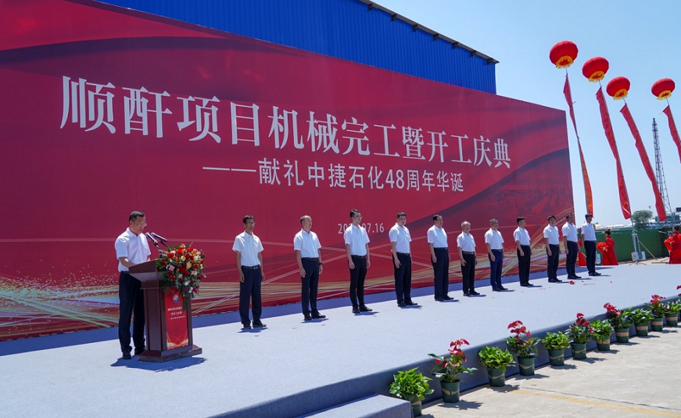 新啟元公司訊 7月16日,晴空萬里,風清散暑,順酐項目現(xiàn)場彩旗飄揚,伙伴們精神抖擻。新啟元公司“獻禮中捷石化48周年華誕——7月16日順酐項目機械完工暨開工慶典”盛裝登場。中捷產業(yè)園區(qū)黨組書記、管委會主任孫西讓,河北中捷石化集團董事長王振華,園區(qū)領導孫麟賀,石化辦主任劉峰,河北中捷石化集團總經理喬樹華,集團領導張鵬、王猛、劉海軍、李金馬,新啟元公司董事長李志剛、總經理劉華冰參加慶典活動。河北中捷石化集團黨委書記于國臣主持盛典。