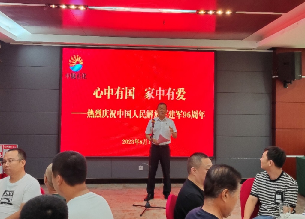 集團公司訊 為慶祝中國人民解放軍建軍96周年,謳歌人民解放軍對偉大祖國和人民做出的豐功偉績,頌揚人民解放軍為保衛(wèi)祖國用血肉筑起的鋼鐵長城,繼承人民解放軍無私奉獻和忠誠擔當?shù)膬?yōu)良作風和革命精神,團結廣大職工立足新時代、競技新賽道、邁步新征程,開拓創(chuàng)新,扎實工作,8月1日,集團黨委組織開展了“心中有國 家中有愛——熱烈慶祝中國人民解放軍建軍96周年”集團2023年慶“八一”建軍節(jié)活動。集團董事長王振華,黨委書記于國臣,總經(jīng)理喬樹華,以及各黨(總)支部書記、各所屬單位退伍軍人共計40人參加了此次活動。