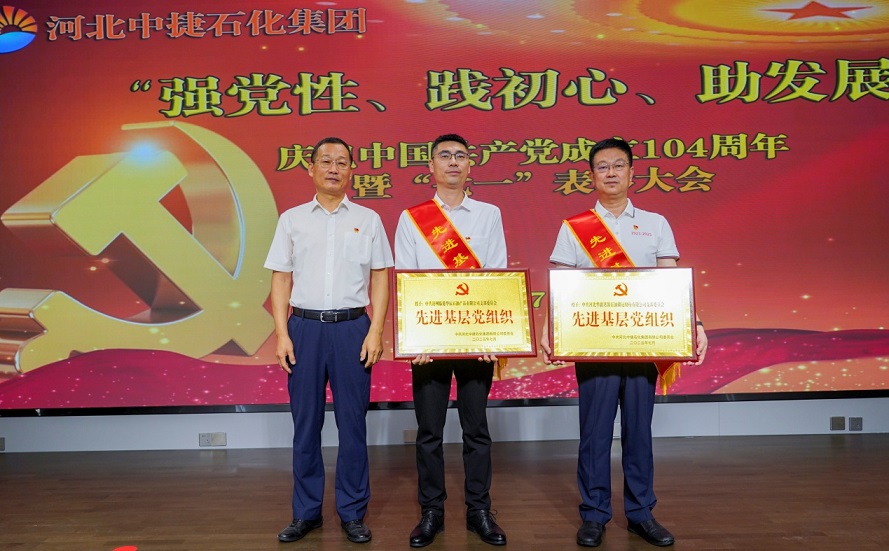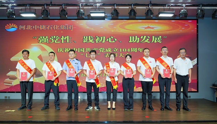 集團公司訊 為慶祝中國共產(chǎn)黨成立104周年,進一步激勵各基層黨組織和黨員充分發(fā)揮戰(zhàn)斗堡壘作用和先鋒模范作用,弘揚先進典型,彰顯榜樣力量,不斷增強基層黨組織的創(chuàng)造力、凝聚力、戰(zhàn)斗力,同時結(jié)合慶祝建廠50周年系列活動,為激發(fā)廣大黨員職工的愛黨愛國熱情,展現(xiàn)中捷石化人“認真、真實、實在”的企業(yè)精神,凝聚力量團結(jié)一心向前行,7月1日,河北中捷石化集團黨委在偉業(yè)大廈二樓多功能廳組織召開了慶祝中國共產(chǎn)黨成立104周年暨“七一”表彰大會和合唱比賽。集團董事長王振華同志,集團黨委書記于國臣同志,集團黨委副書記、總經(jīng)理喬樹華同志,集團黨委副書記、紀委書記朱振江同志以及各黨支部書記、各所屬單位總經(jīng)理、2024-2025年度先進基層黨組織代表、優(yōu)秀黨務工作者、優(yōu)秀共產(chǎn)黨員、合唱比賽人員共計120余人參加了此次活動。