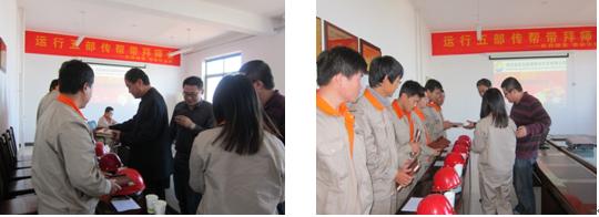 2012年10月17日,對(duì)于新啟元運(yùn)行五部來講,是一個(gè)可喜可賀的日子。在這陽光明媚的金秋時(shí)節(jié),運(yùn)行五部的新老員工們?cè)诠靖笨偨?jīng)理劉立新、綜合管理部經(jīng)理李樹祥、技術(shù)工程部經(jīng)理王政的見證下,舉行了一次隆重的拜師儀式。此次拜師會(huì)的主題是:“一杯拜師茶,帶動(dòng)你我他!”