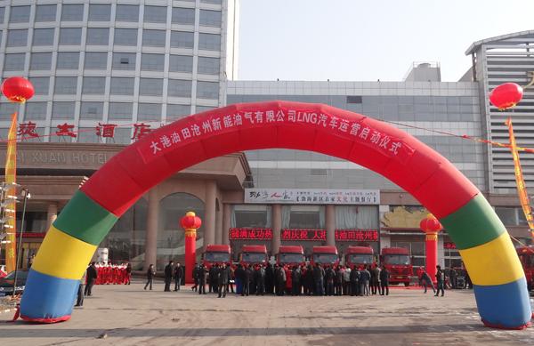 12月31日,滄州新能油氣有限公司LNG汽車運(yùn)營(yíng)啟動(dòng)儀式在華悅凱旋大酒店廣場(chǎng)隆重舉行,這標(biāo)志著我公司首批LNG汽車正式投入運(yùn)營(yíng)。