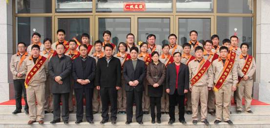 會(huì)后,公司領(lǐng)導(dǎo)與受表彰的先進(jìn)代表在員工食堂門口合影留念。