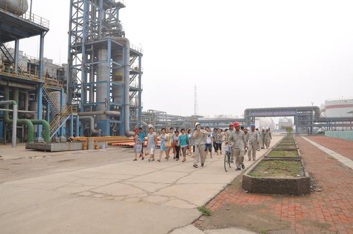 2013年8月4日是公司各級管理人員家屬走進(jìn)新啟元的日子,上午10:00員工家屬在綜合管理部人員的陪同下來到新啟元,與公司領(lǐng)導(dǎo)共同見證了蒽油反應(yīng)器吊裝的過程,并由各部室負(fù)責(zé)人陪同員工家屬繞廠區(qū)參觀,對各裝置情況作了了解。