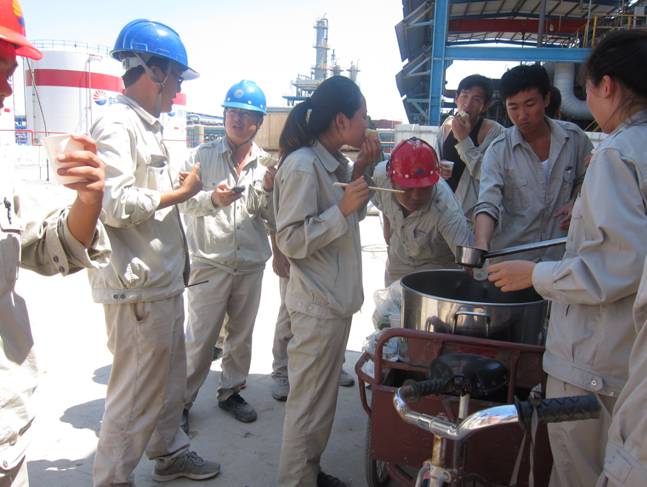 一次又一次的裝運(yùn)、搬卸、裝填,現(xiàn)場(chǎng)全是伙伴們忙碌的身影。數(shù)不清到底裝填了多少袋瓷球,多少桶催化劑,大家匆匆吃過(guò)午飯后又投入到了繁忙的工作中,一直到很晚。